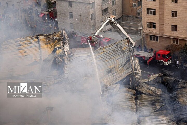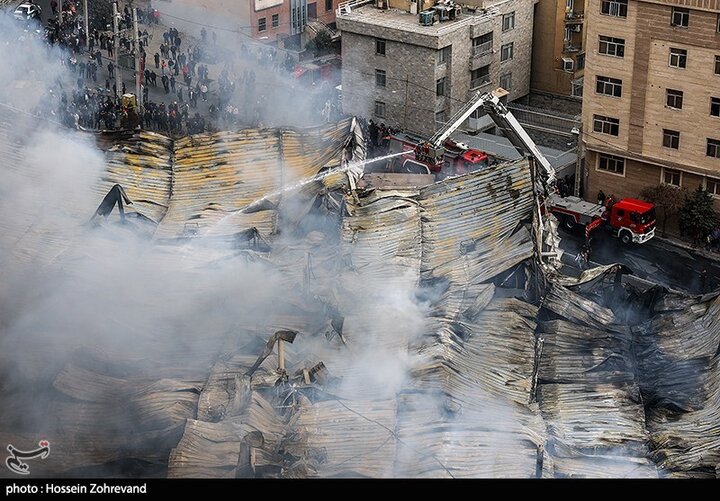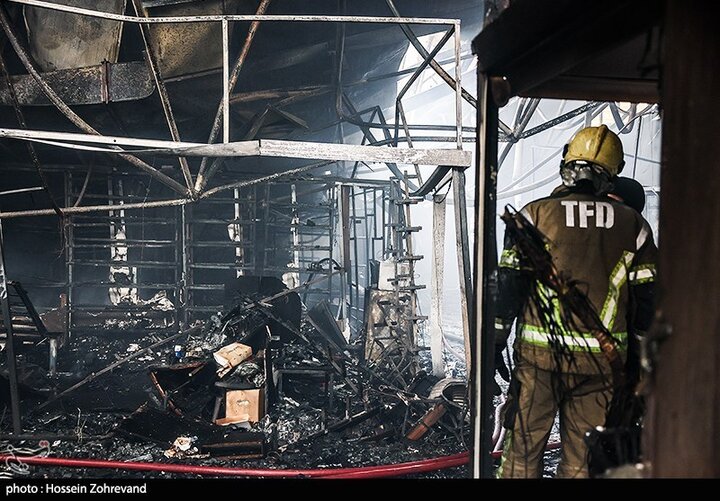 تصاویر جدید از آتش سوزی بزرگ در بازار جنت آباد | ببینید